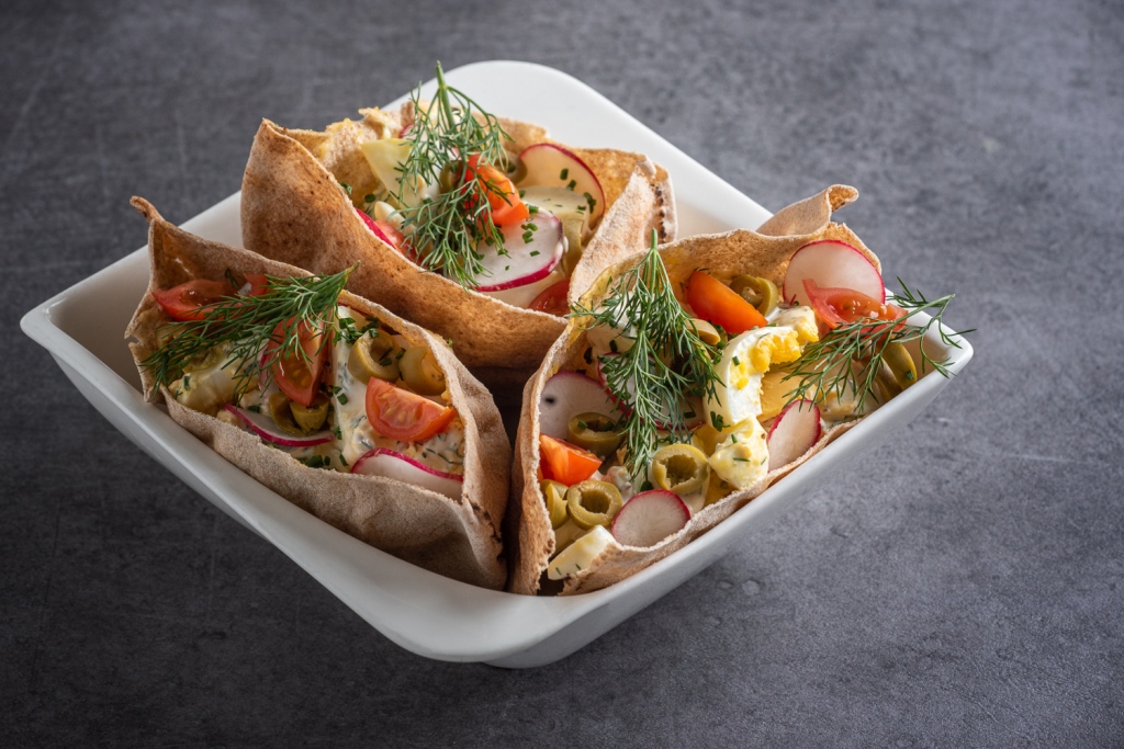 Zajímavý recept, jak využít větší množství vajec (nejen po Velikonocích). Vajíčkový salát je rychlý, jednoduchý, skvěle chutná i vypadá. Díky přidání chuťově výrazných zelených oliv a naplněním do pita chleba, povýšíte i "obyčejný" salát na atraktivní pokrm. A pokud vám nevadí tučnější jídla, můžete k jogurtu přidat i trochu majonézy.